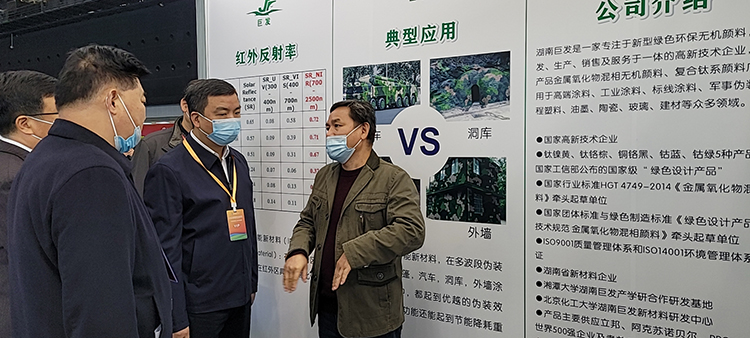 展会期间,湘潭市吴志雄副市长、贸促、工信、发改等各政府部门领导一行莅临湖南万搏官方网页版展厅(A449)参观指导。我公司总工程师王文强先生等工作人员热情接待副市长一行。王文强总工程师向吴市长一行介绍了湖南万搏官方网页版近年来,不断斥巨资对5G通讯新材料及新型环保无机颜料等进行探讨与摸索,陆续研制出5G通讯用LDS新材料、红外反射无机新材料,环保混相无机颜料等系列品种,现已逐步推向市场。吴市长一行领导对湖南万搏官方网页版对公司不断发展壮大的行业规模和日益广阔的发展前景给予了充分肯定,并对今后企业的发展、竞争方向提出了建议。吴市长希望公司在下阶段工作中,不断巩固现有技术优势的基础,进一步加大科研投入力度,不断拓宽、创新销售思路,坚持高起点、高标准、高要求的管理模式,准确把握产品质量关,不断提高环保新材料系列产品在国内外的知名度和美誉度。